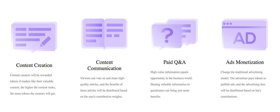 Content creators will be rewarded tokens if readers like their valuable content. the higher the content ranks, the more tokens the creators will get.